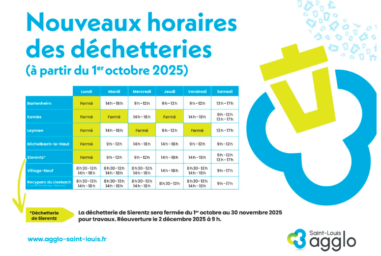 À compter du 19 mai prochain, Saint-Louis Agglomération ouvre la campagne d’inscription relative aux badges d’accès au sein des déchetteries de son territoire, Il est à noter qu’à partir du 1er octobre 2025, la présentation d’un badge sera indispensable pour accéder aux déchetteries de Saint-Louis Agglomération.
